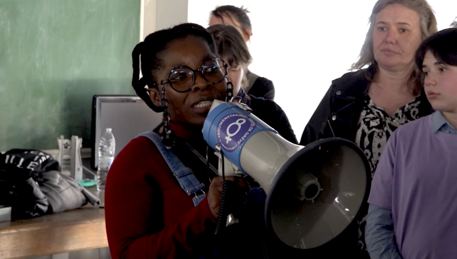 “Même si nous ne sommes pas des citoyennes reconnues en Belgique, on est là, on existe. Nous sommes vos voisines, nous sommes les parents des ami.e.s de vos enfants, nous sommes celles qui travaillons chez vous, dans vos hôpitaux. Nous aussi, on a le droit de grèver pour nous faire entendre.”
